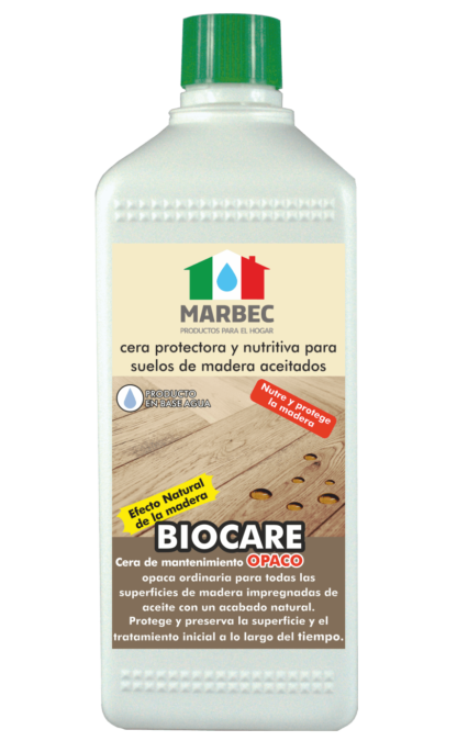 BIOCARE OPACO es una cera protectora y de mantenimiento para todas las superficies de madera impregnadas de aceite con un efecto natural opaco. Para uso interno.