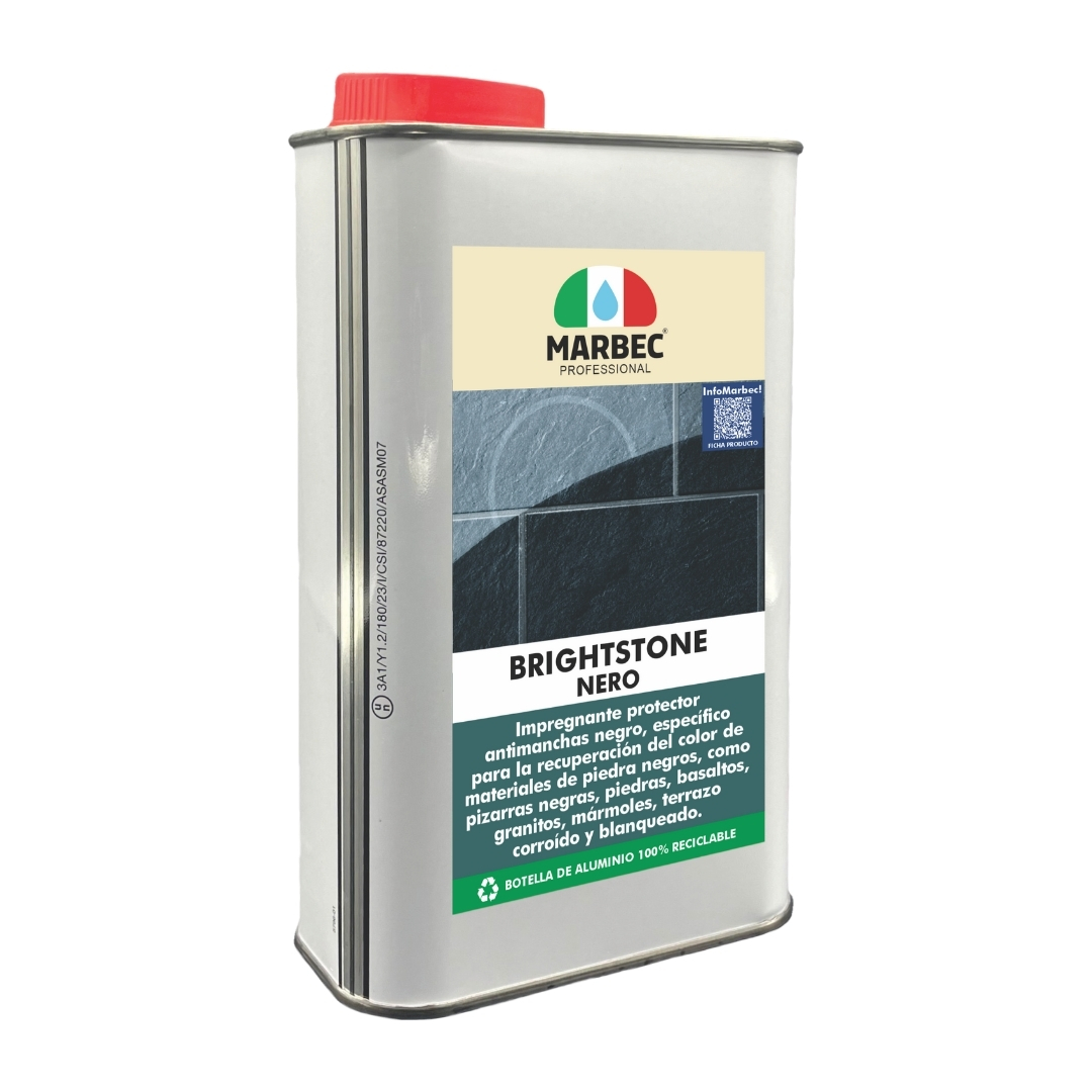 BRIGHTSTONE NERO es una cera impregnante protectora y antimanchas para pizarra negra. Se utiliza para recuperar el color de la pizarra, la piedra, el basalto, el mármol, el granito y los aglomerados de cemento negro.