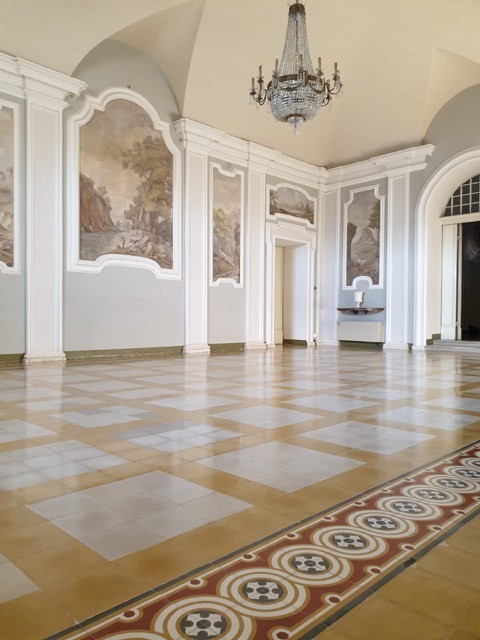 ¿Alguna vez has cerrado los ojos y soñado con una fabulosa villa? Habitaciones con frescos, paredes llenas de historia, suelos antiguos en cemento que han acogido bailes románticos de princesas y mujeres nobles adornadas con exuberantes vestidos y suntuosas joyas. El trabajo más hermoso de enero nos lleva a fantasear en uno de los lugares más mágicos de nuestra hermosa península, la hermosa villa Pandolfa. Una elegante e histórica residencia ubicada en las colinas de la valle del Rabbi, rodeada por un paisaje fantástico caracterizado por vistas impresionantes, hectáreas de vegetación y viñedos de ensueño. Un lugar atemporal, lleno de encanto, que hoy gracias a las salas características, desde la biblioteca hasta la sala central con las cuatro salas laterales en la planta baja, se presta perfectamente para albergar eventos y recepciones de prestigio. Es precisamente una habitación maravillosa en la villa, con su histórico suelo en mosaico hidráulico, la protagonista de los trabajos de restauración que queremos contar hoy. El trabajo se llevó a cabo en la sala de frescos, en la que los talentosos artesanos de la C.T.R. de SABBATINI MAURO de CISTERNA DI LATINA fueron llamados a intervenir y recuperar el prestigioso suelo de la habitación, compuesto por hermosos mosaicos hidráulicos amarillos que, desafortunadamente, debido al tiempo y al deterioro, parecían particularmente deteriorados y manchados.
