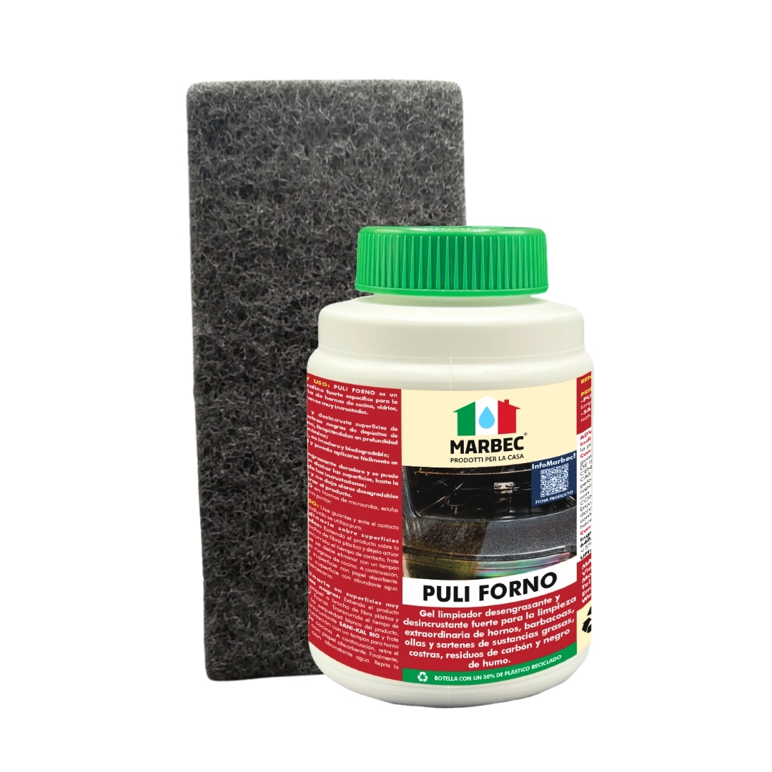 Gracias a su fórmula avanzada, el gel desincrustante para hornos PULI FORNO no solo limpia y desengrasa de manera efectiva, sino que también elimina la grasa quemada y el hollín con su acción profunda. Su textura en gel permite aplicarlo fácilmente incluso en superficies verticales, garantizando que toda la suciedad desaparezca sin esfuerzo.