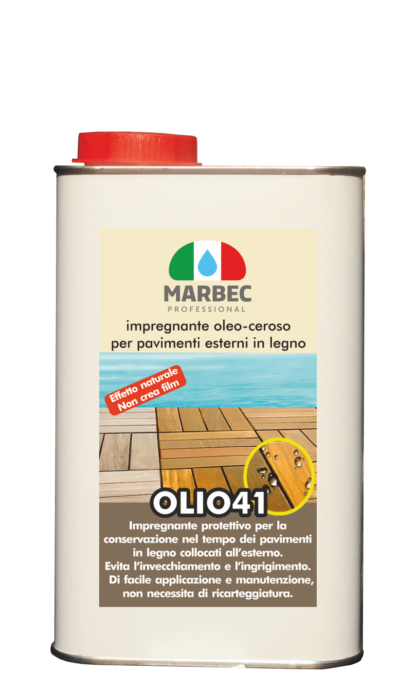 OLIO41 es un agente de impregnación de aceite y cera para suelos y muebles de madera colocados al exterior.