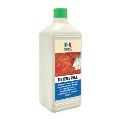 DETERBRILL es un detergente neutro concentrado no agresivo específico para suelos de material pétreo tratados con cera, como terracota, piedra natural, granilita, baldosas de mármol y aglomerados cementosos.