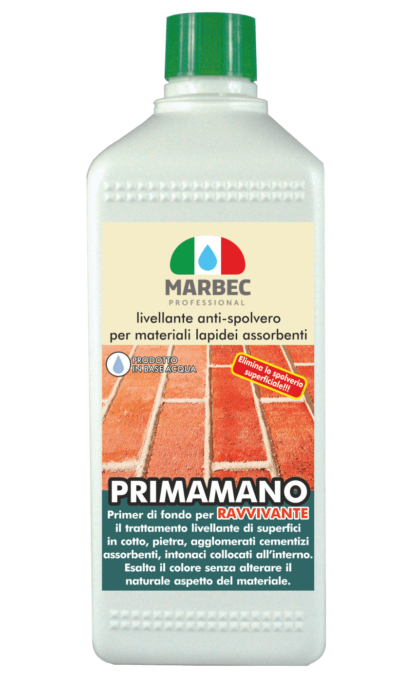 PRIMAMANO RAVVIVANTE es una cera niveladora de fondo para todo tipo de materiales de piedra de absorción media-alta como piedras, barro, hormigón y yesos minerales, colocados en interior.