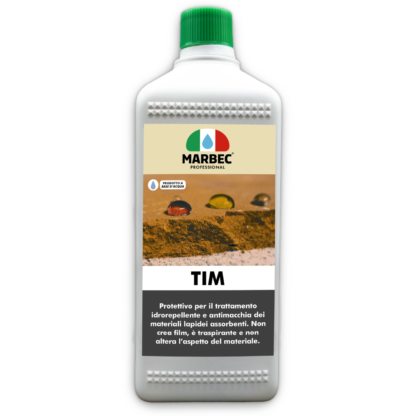TIM es un producto al agua de fácil aplicación y es el producto más importante para el tratamiento de materiales de piedra absorbentes internos y externos (barro, cemento, piedras) porque protege el material de la humedad ascendente y de las manchas que genera. También tiene una excelente resistencia a las manchas y funciona como 2 productos en 1.