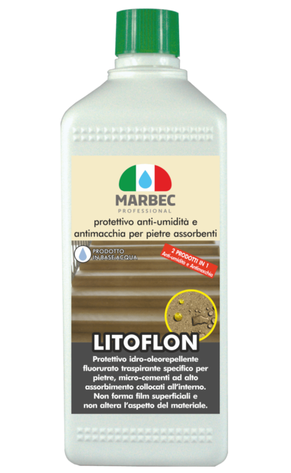 LITOFLON es un protector fluorado hidrófugo y oleófobo específico para piedras areniscas con acabados superficiales rugosos (ej. rayadas, flameadas, etc.) y para la protección de microcementos.
