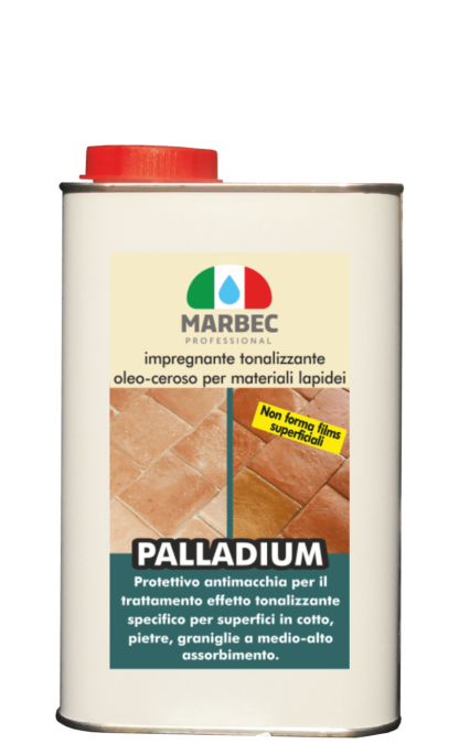 PALLADIUM es un impregnante de aceite y cera para el tratamiento reavivante de superficies en barro, piedra y terrazo de absorción media-alta colocadas en el interior.