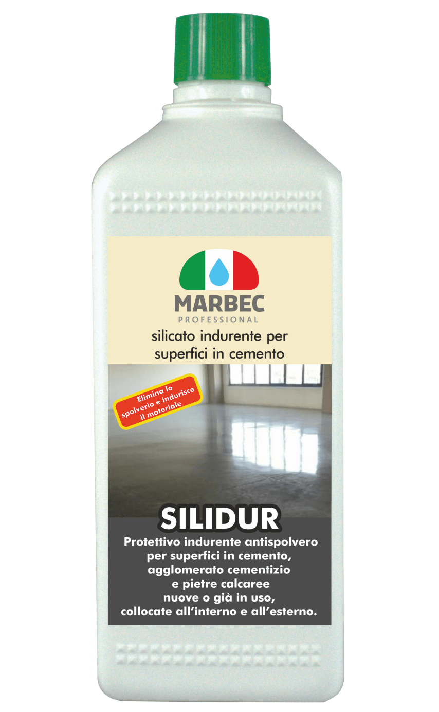 SILIDUR es una mezcla de silicatos de litio y potasio en solución acuosa, para el tratamiento de superficies de cemento o terrazo (arenillas, baldosas de cemento, etc.) y calizas, colocadas en interior o exterior.